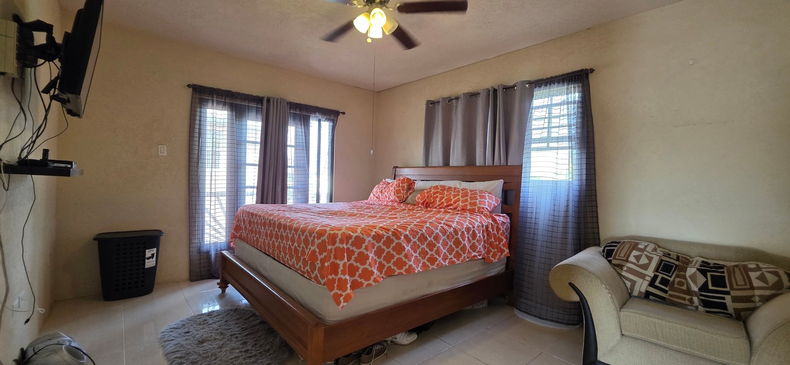 Upstairs is a spacious landing and, on this floor, you’ll find three comfortable bedrooms, including a master suite with a walk-through closet. A second bathroom serves the remaining bedrooms, and there is an additional patio at the back, offering extra outdoor space for relaxation.